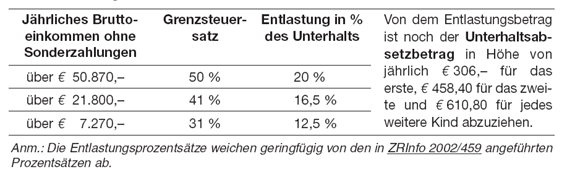 Die folgende Tabelle enthält die für die Berechnung des gekürzten Unterhalts notwendigen Werte: